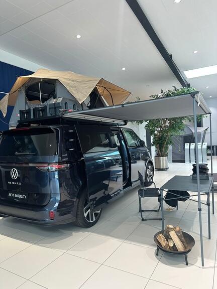 Bemærk: For at markisen kan monteres, skal bilen være monteret med Tagbagagebærer til kort Buzz, eller Tagbagagebærer til lang Buzz samt Monteringssæt for markise.