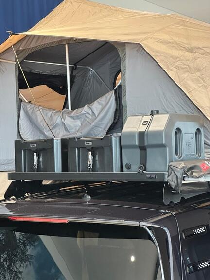 Monteringsbeslaget er let at afmontere og forstyrrer ikke dækslets funktion. Inkluderer de nødvendige beslag til at montere tanken på dit tagstativ samt til at stabilisere siderne.